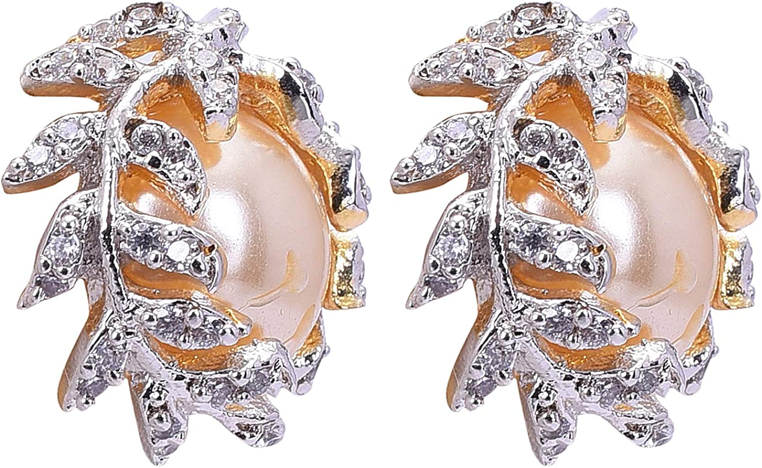 Kaleera Cubic Zirconia Gold Round Pearl Top Stud Earrings Jewelry Wedding Bridal Fashion Girls KL3210