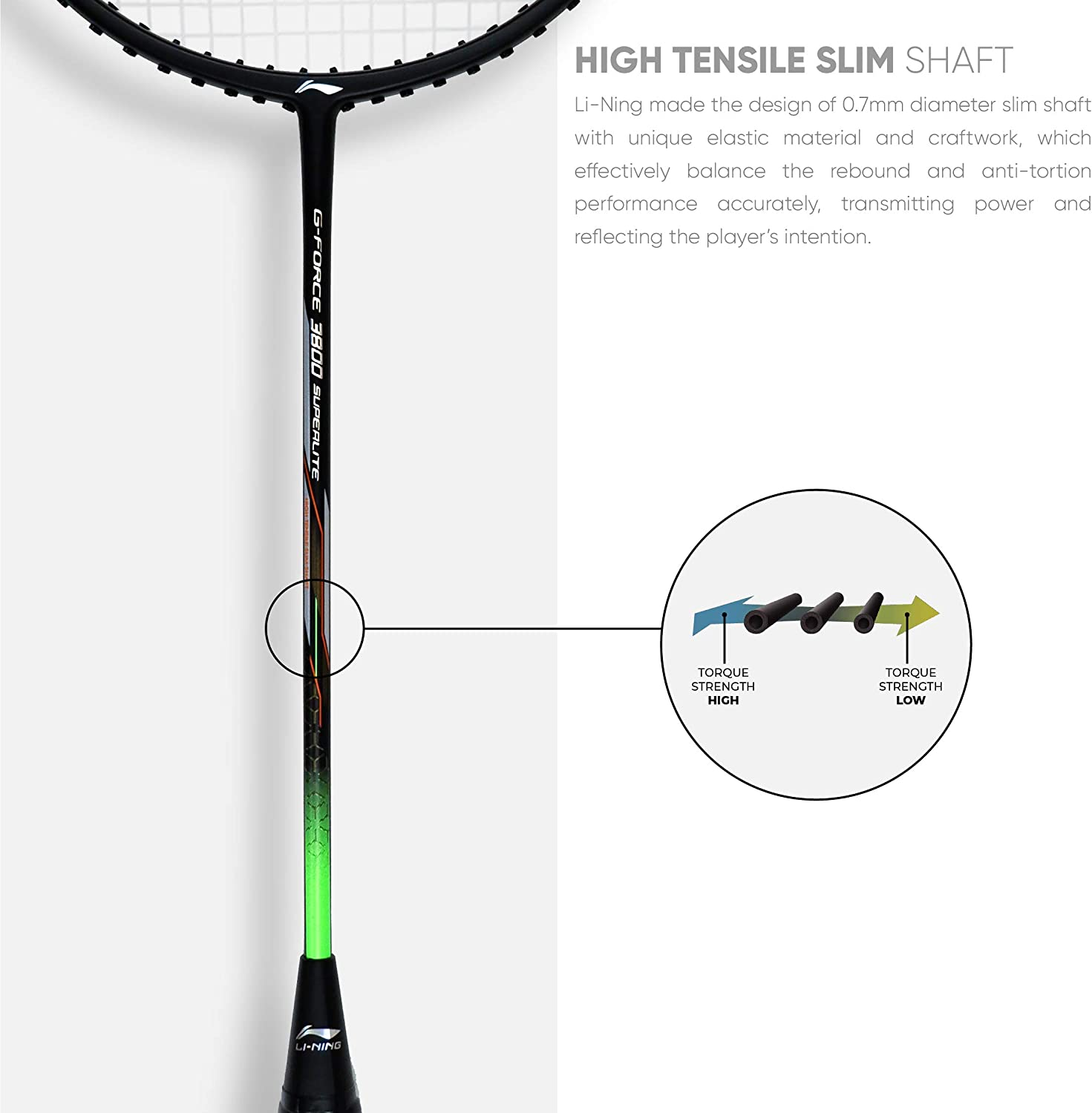 Li-Ning G-Force Superlite 3600 Carbon-Fiber Strung Badminton Racquet with Free Full Cover